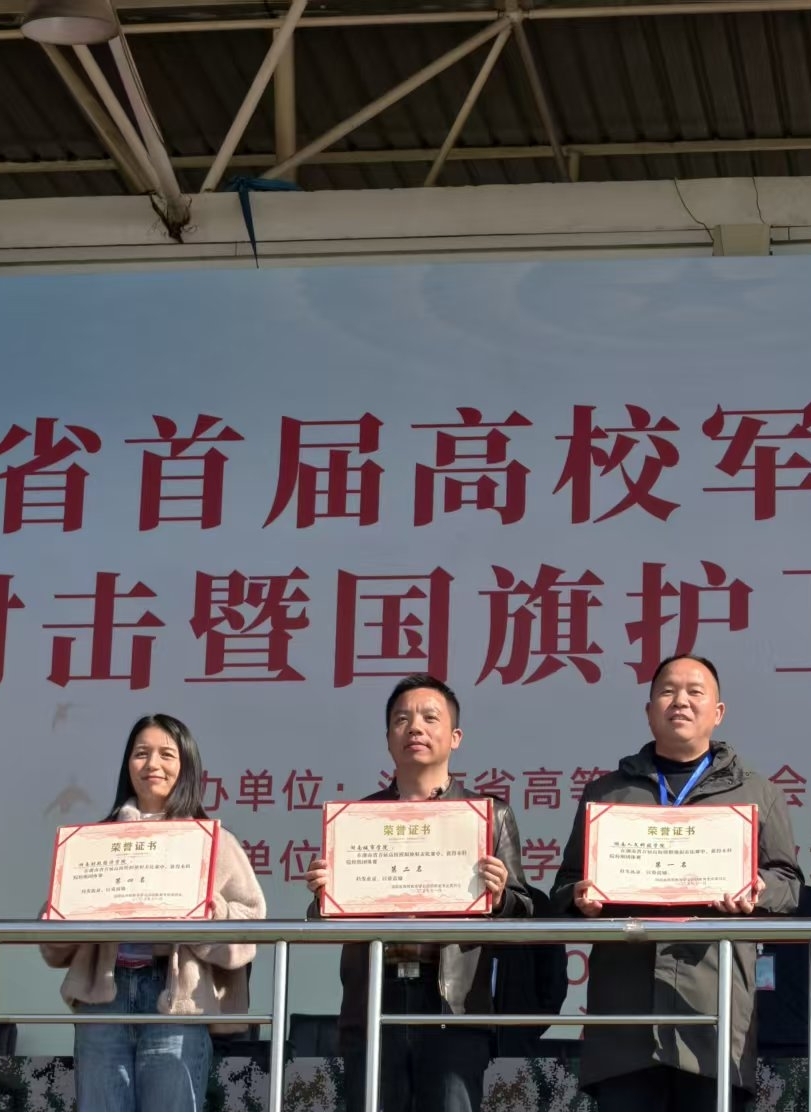 (通讯员:李波)11 月 22 日,湖南省首届高校军事兴趣类社团模拟枪射击比赛在湖南农业大学圆满落幕。全省 61 所高校代表队同台竞技、各展所长,388vip太阳集团选派的温圣坚等 4 名同学奋勇拼搏,历经 4 轮激烈角逐脱颖而出,最终斩获团体第二名的优异成绩;队员吴祥意表现亮眼,在女子组 50 米 “立、跪、卧” 三姿射击项目中斩获第三名。