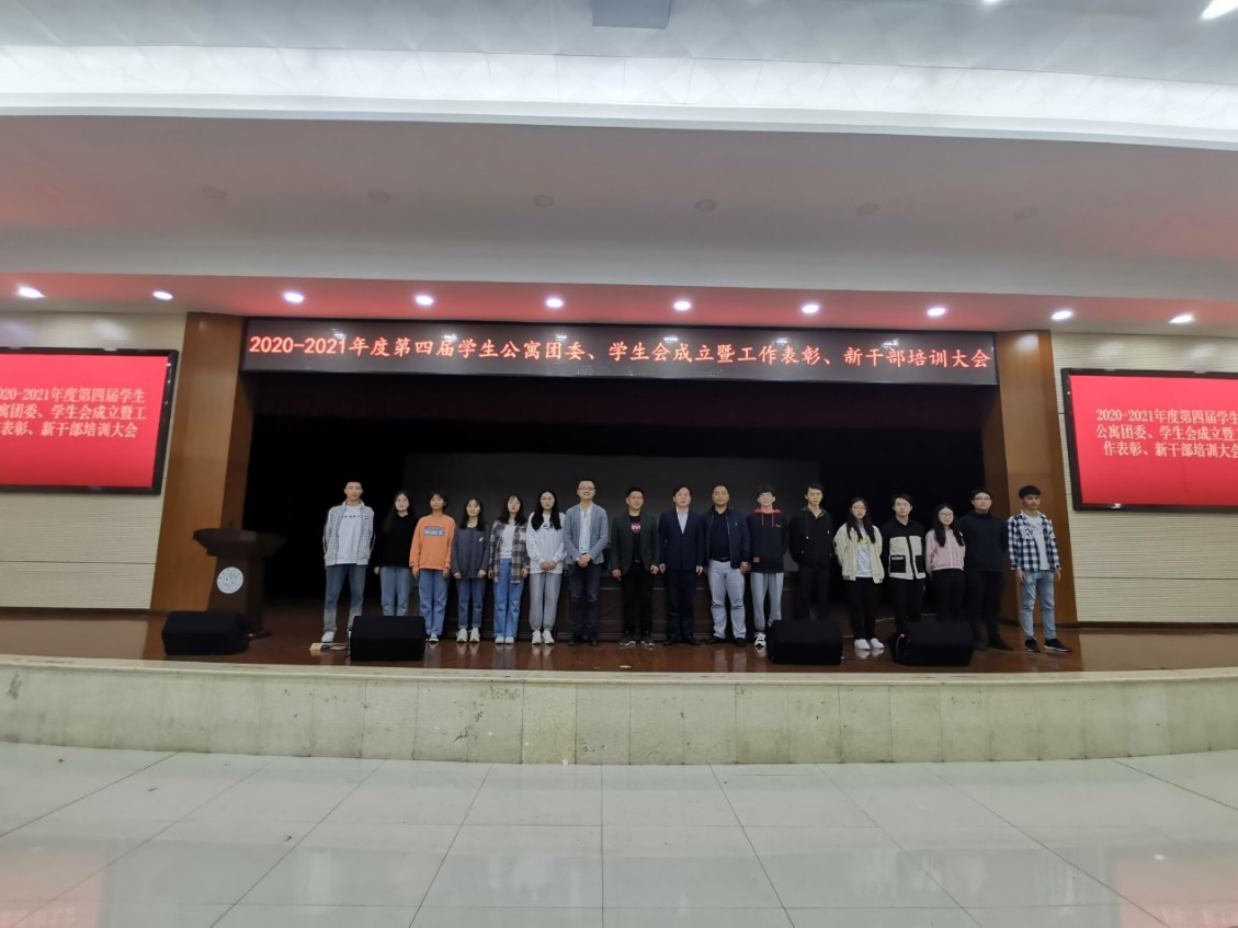 2020年11月18日19点,第四届388vip太阳集团学生公寓团委、学生会成立暨工作表彰、新干部培训大会于新食堂三楼学生活动中心顺利召开。出席本次大会的有:学生工作部(处)部长贺正宜老师,学生工作部(处)副部长刘政科老师,人文学院副书记黄智老师,学生公寓团委、学生会指导老师许磊老师,学风建设与学风管理科全体老师、二级学院负责宿管工作老师、干部同学及19、20届学生公寓团委、学生会全体成员。
