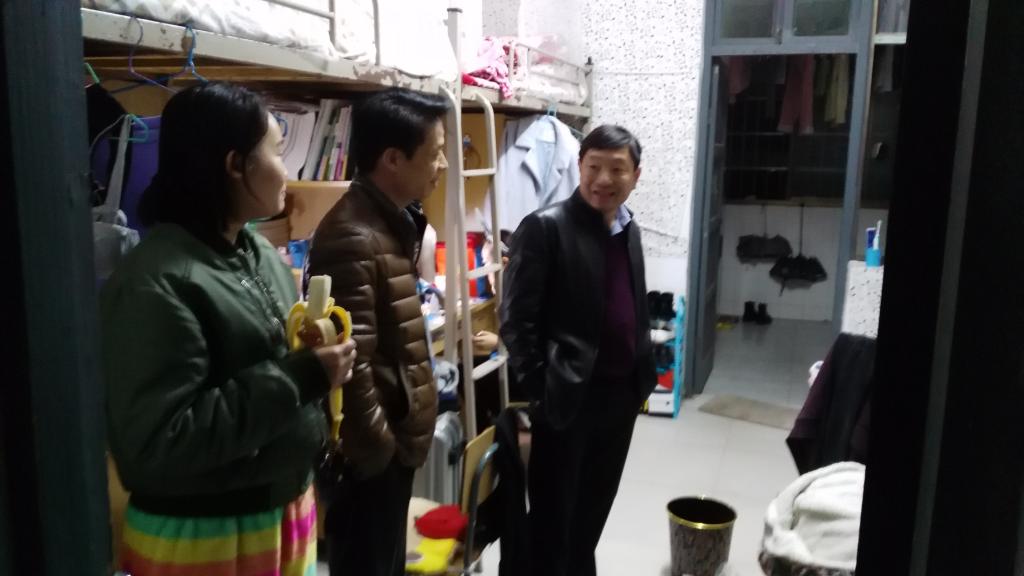 在学生公寓,调研组了解了388vip太阳集团官网和卫生保洁现状:整体的情况在好转,公寓卫生比以前有改善,宿管员、门卫值班基本到位,门卫经商势头被遏制,但也存在门禁维修不及时、角落卫生不到位、学生晚归和使用违规电器等情况。