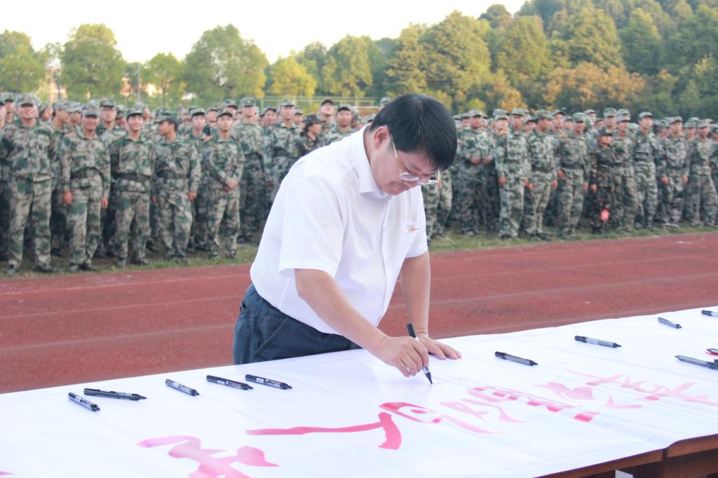 党委委员、副校长谭献良作军训总结。他指出,今年学校军训工作有三大特点:一是全体参训同学,文明上进,不怕苦、不怕累;二是国防教育和入学教育有机结合;三是辅导员和教官工作积极主动,认真负责。