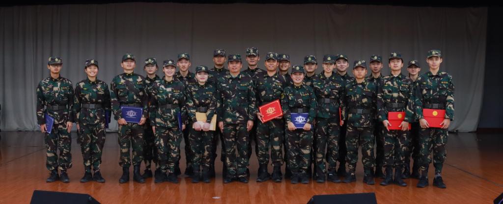 刘政科副部长宣读《表彰决定》,获得网络评选2019年度军训 “最美教官”、“金质服务奖”、“银质服务奖”、“特别贡献奖”、“优秀贡献奖”、“训练标兵奖”和“教官杯”拔河比赛冠军区队荣誉的个人和集体依次上台领奖。
