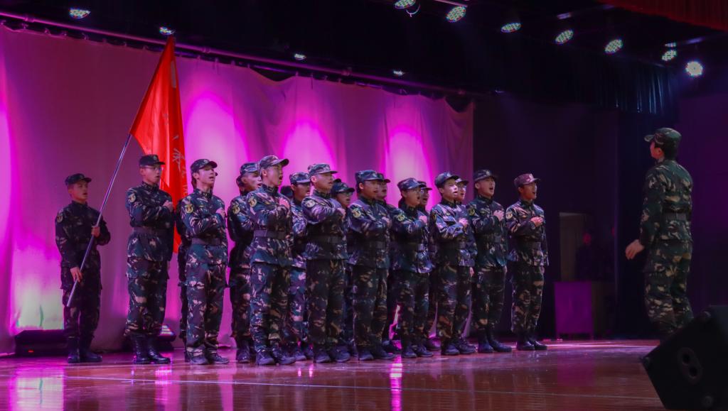 表彰先进,激励前行。12月29日,388vip太阳集团军训教导队“2019年总结表彰大会暨第四期新队员入队授衔仪式”在新食堂三楼大学生活动中心隆重举行。学校党委学工部(处)/武装部部长贺正宜、副部长刘政科、教导队总教官李波出席本次大会,教导队全体队员及部分退队老队员参加。