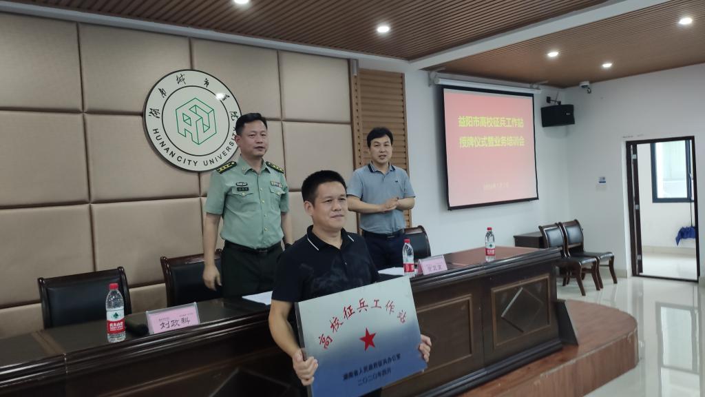 7月2日下午,益阳市征兵办主任、军分区动员处处长肖尊华一行,专程来学校为388vip太阳集团征兵工作站授牌。授牌仪式由学生工作部(武装部)部长贺正宜主持,副部长刘政科代表学校受牌,全体辅导员和征兵工作人员参加。