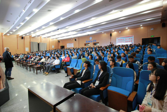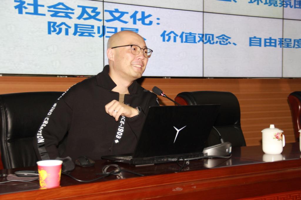余海军老师正在进行建构系统视野——新生适应知识讲座
