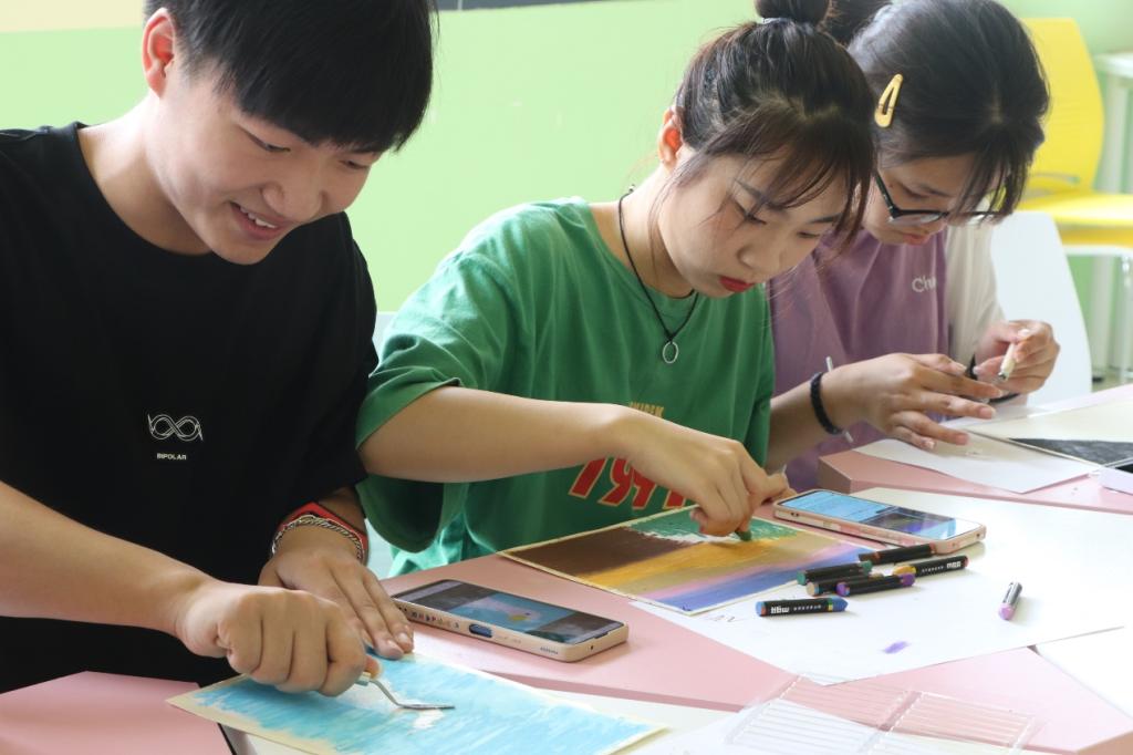 同学们互相观赏彼此的作品。大家纷纷表示受益匪浅,感触颇深,不仅因为其巧妙的构图和别具一格的创作风格,还因为彼此独特的自我见解和画作立意。整个活动充满了爱的元素,同学们互帮互助,在共同学习与成长中,体验了美术创意实践活动所带来的精神享受,展现了积极乐观的心态与对美好生活的追求。(学生记者孙雅涵)