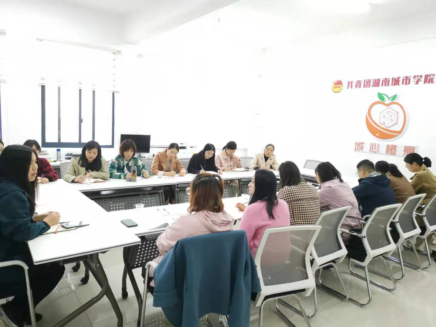 (通讯员陈文琴)2021年11月4日上午9:00,2021年下学期心理辅导员工作会议在第二办公楼521举行。本次会议由学生工作部(处)副部长匡艳群主持,大学生心理健康教育中心全体教师和各二级学院的心理辅导员参加。