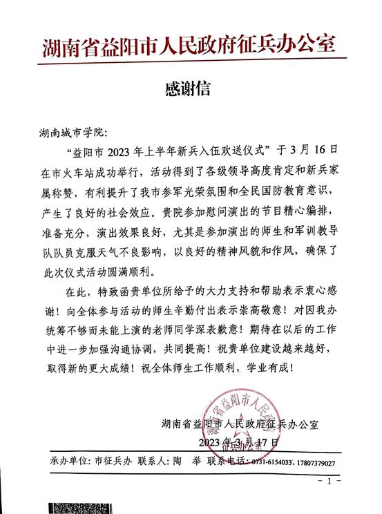 (通讯员 陈柳蓉)3月16日下午,“益阳市2023年上半年新兵入伍欢送仪式”在益阳市火车站广场隆重举行,益阳市党政军领导、新兵及新兵亲属、热心市民朋友、媒体记者共千余人出席活动。