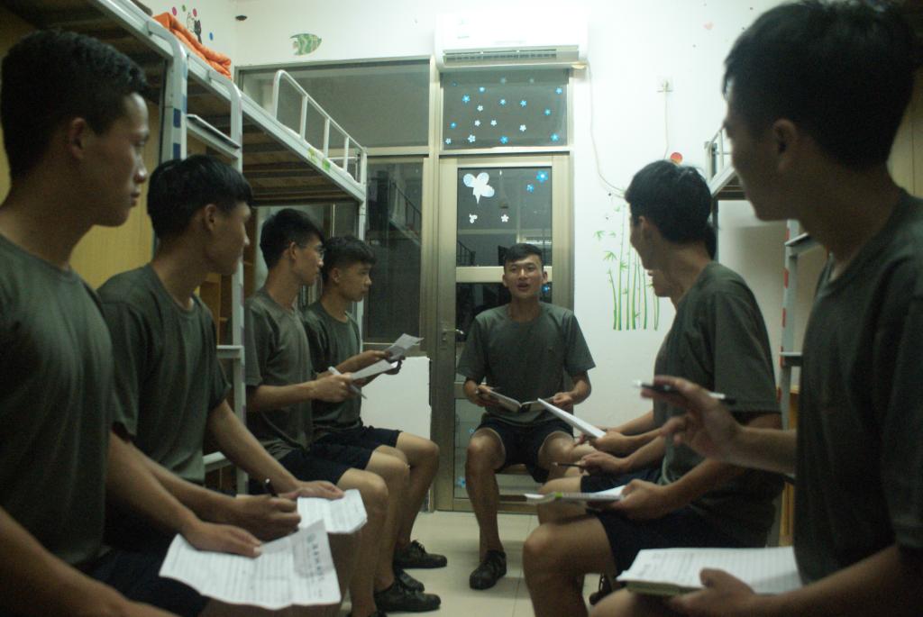 集训队员胡学培认为,对于一个有纪律的组织来说,绝对忠诚是核心,素质过硬是基础,纪律严明是保证,刻苦学习是本职。他们一致认为,绝对忠诚,首先是忠于党和国家,其次是忠于组织、学校、家人;素质过硬,大家的“小目标”是成为一名合格的军训教官,想要教导新兵,首先要严格要求自己,锻造过硬的本领及专业素养;纪律严明,“没有规矩,不成方圆”,集训队员要听从指挥,做到令行禁止;刻苦学习,作为集训队的一员,其第一身份是学生,学习是首位,应做到品学兼修,知行统一。