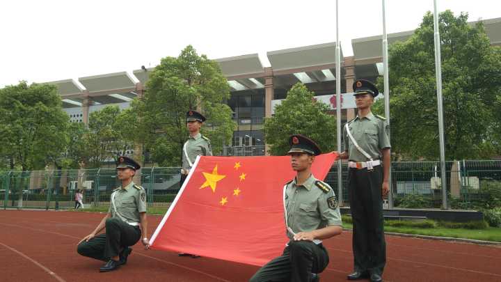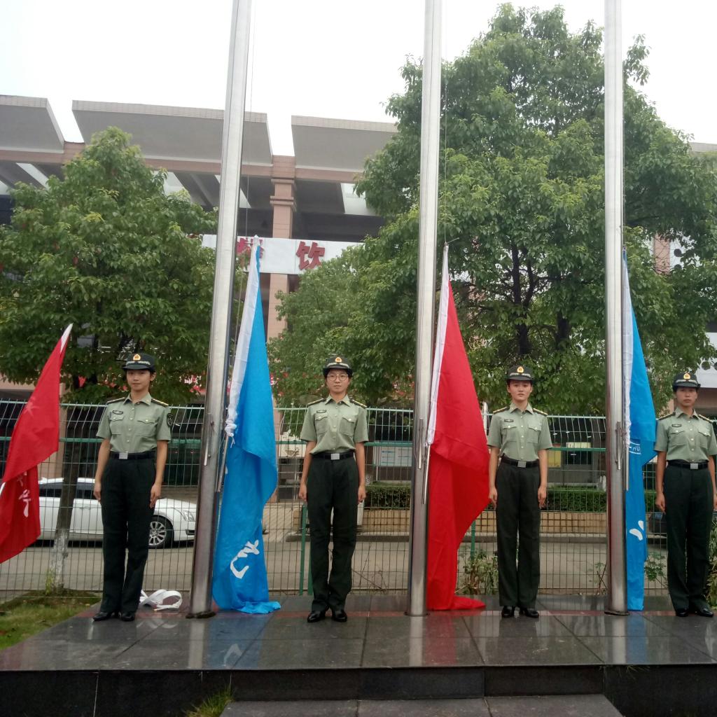 9月6日,开学第一天全校举行升国旗仪式,具体由军训教导队所属的国旗班进行。 风微微凉,首先由四名男队员进行正步护旗,转交给四名女队员后进行升旗。旋律响起,国旗徐徐上升,在队员们注视下到达了顶端。 升国旗仪式意义重大,不仅升起了国旗,更是在全校师生面前展示了军训教导队的风采,体现了军训教导队过硬的训练素质和良好的作风形象。
