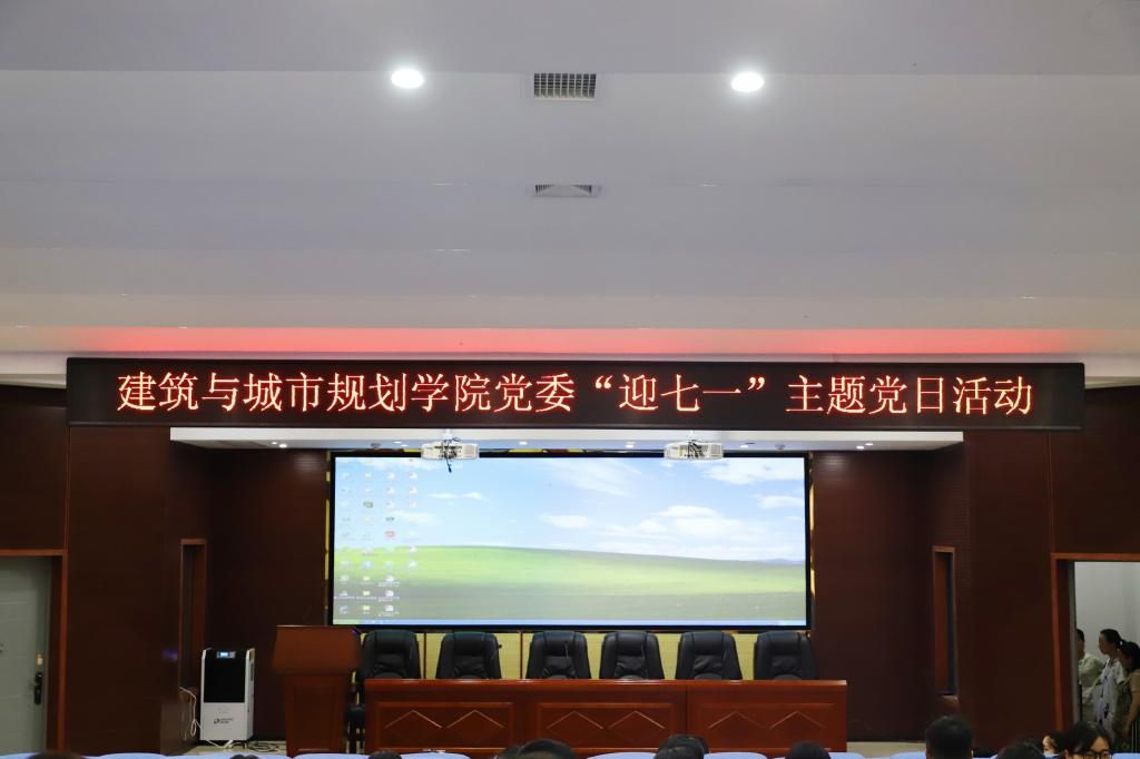 2018年6月29日下午2:30,388vip太阳集团,388vip太阳集团官网党委在建筑规划楼121报告厅组织开展“迎七一”主题党日活动,参与本次主题活动的有学院教工第一党支部、教工第三党支部及全体学生党员。