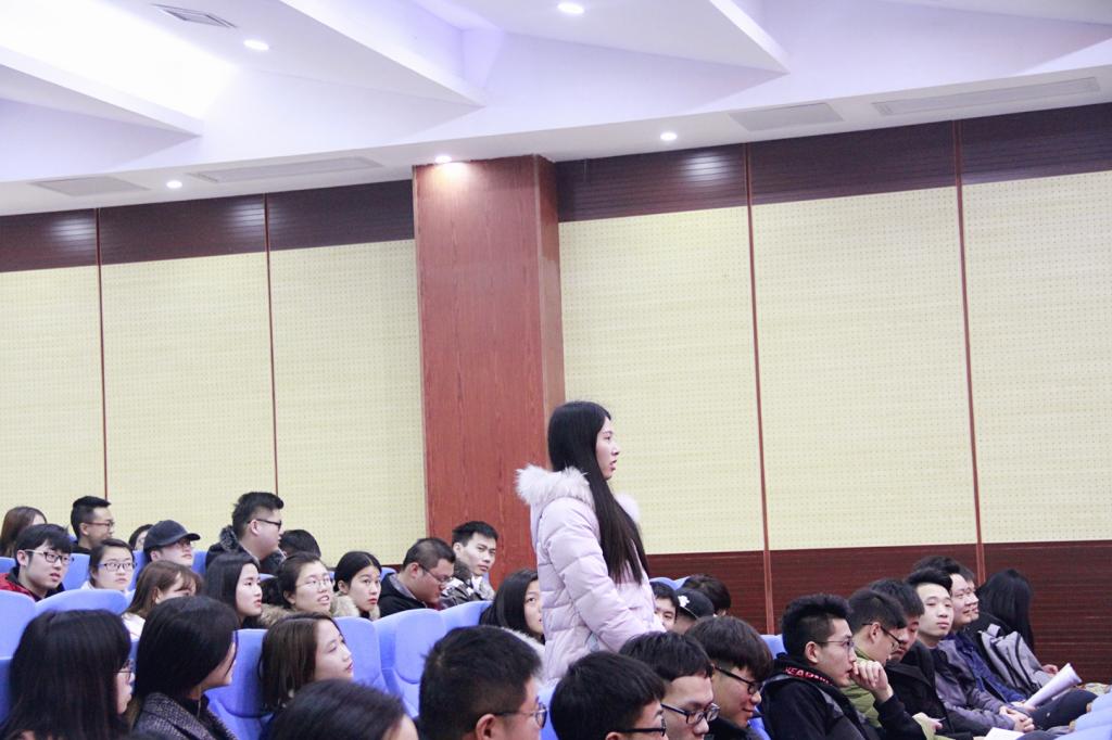 本次活动分两场进行。第一场是洲宇设计集团柴玲校友的演讲。她介绍了入职以来的自己奋斗打拼的情况,她强调在职场中一定要能吃苦、要敬业、要精益求精,这样才能很快站稳脚跟,取得更好的发展平台。柴玲学姐入职三年以后便开始了她的创业之路,她和她的合伙人一起策划方案、开拓市场、商谈业务,经过近10年的努力,洲宇设计集团员工现已达700人之多。柴玲学姐接着介绍了公司的发展目标、人才引进和培养机制以及晋升通道,之后回答了在场学生提出的问题。